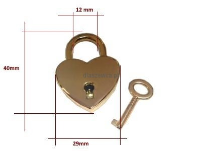 Kłódka SERCE + kluczyk 20x40x07 złoto .