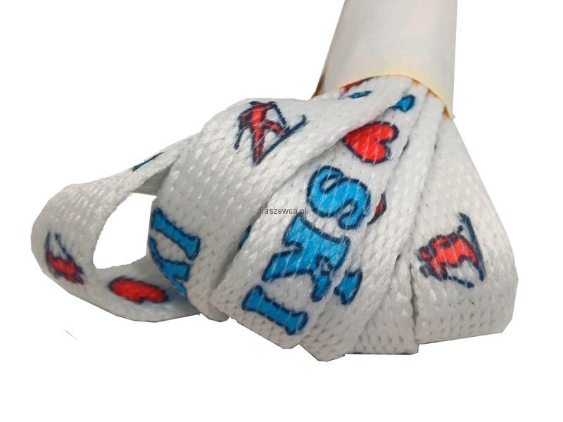 Kolorowe sznurowadła z napisem I LOVE SKI. Twoje sneakersy czekają na nowe sznurowadła